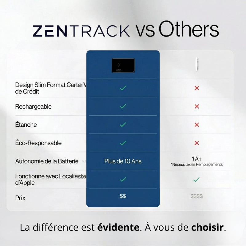 Fini les gadgets encombrants. ZENTRACK se glisse partout incognito, protégeant vos affaires sans jamais attirer l'attention. Sa batterie dure des mois.