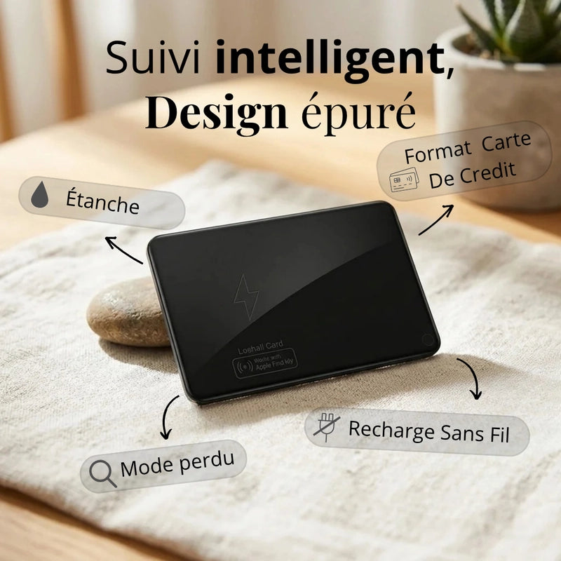 Conçue pour la discrétion et l'efficacité, la carte offre une autonomie prolongée et se recharge sans fil avec une simplicité déconcertante, pour une tranquillité d'esprit continue.